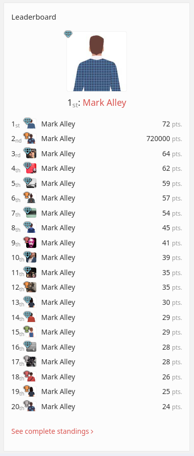 ToneGym has some funny bugs, like usernames apearing twice in contests @Azet aya or being able to go negative in tonecoins @Benjamin Jack@Benjamin Jack or being include in Weekly League championships and Weekly Country Leaders chamionships that you don't belong in @Me. This is a space to upload pictures of those things and to laugh about it.